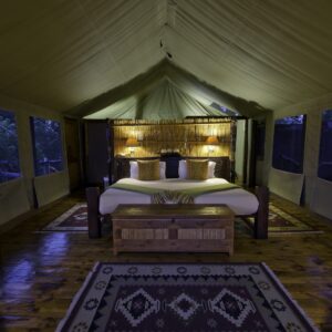 Nine well-appointed ensuite tents each have a large bedroom area, lounge, private plunge pool, sala and indoor and outdoor showers. Raised walkways allow animals to wander freely through the camp to and from the water. The lounge, dining room and bar areas are on expansive raised decks and there is a pool and an open-air ‘kgotla’ for dining under the stars. Game drives (day and night), walks, and sublime boat cruises on the Linyanti River are all offered here.