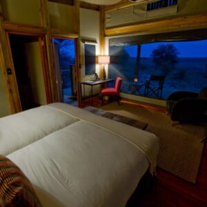 Exclusive and private, this eco-friendly camp features four magnificent luxury tented villas and a spectacular main area, all raised on decking to take advantage of sweeping views of the Zibadianja Lagoon. Each tent features four-poster bed, beautiful copper tub, organic toiletries, outdoor shower, cozy fireplace, private plunge pool, private deck area and breathtaking views over game-rich floodplains. Complimentary use of professional grade telescopes, cameras, and binoculars are an ideal complement to plentiful game sightings.
