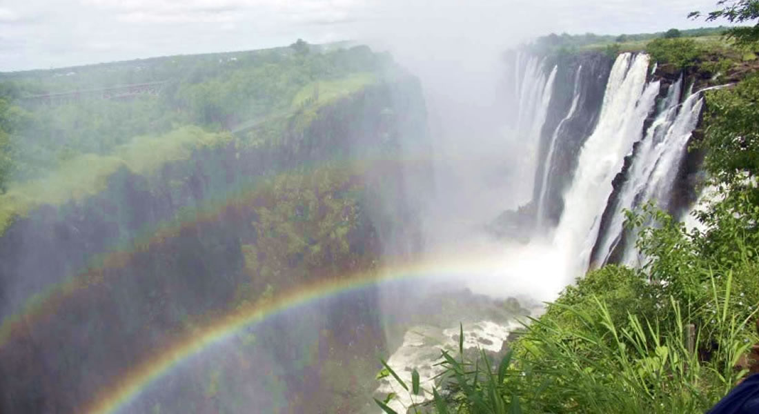 Over a mile wide and 300 feet high, Victoria Falls is an awe-inspiring site to behold. While it is renowned as one of the Seven Natural Wonders of the World, its local name is particularly apt—Mosi-oa-Tunya ("the smoke that thunders")—as it accurately depicts the roar of the falls and the plume of spray that is visible for miles around as it cascades into the Zambezi River.
