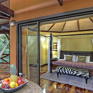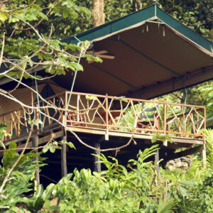 Rafiki is a luxury tented camp nestled on 842 acres of pristine jungle along the Savegre River, 18 miles south of Quepos and Manuel Antonio National Park. Nestled in the rainforest, the Rafiki Safari Lodge combines all the comforts of a hotel with the splendor of a jungle safari. Tents are equipped with ensuite bathrooms, hot water, private porches, and hydroelectric power. Theres a spring-fed pool with a waterslide and ample opportunity for horseback riding, bird-watching, hiking, and white-water rafting. Enjoy delicious meals and fresh Costa Rican coffee in the open air dining room.