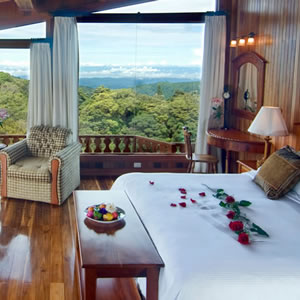 Monteverde Lodge & Gardens brings the Monteverde Cloud Forest and its many creatures straight to your doorstep. Surrounded by botanical gardens, a small waterfall, a swimming pool, extensive nature trails, and a live butterfly exhibit, this hotel offers a true oasis in nature. A progressive recycling strategy, a solar-energy system, and a huge solar-powered Jacuzzi are among this hotels noteworthy environmentally sound practices.