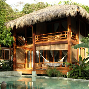 Nestled amongst the trees, the Copa de Arbol eco-resort blends seamlessly into the natural backdrop. Only 100 yards to the beach, you will be fully immersed in the rhythmic sounds of the ocean and rainforest. Your stay will be complemented with two unforgettable day tours. One of snorkeling in an exotic marine ecosystem next to Caño Island and the other of hiking in the exuberant rainforest reserve of Corcovado National Park. Other optional activities can be requested during your stay, and are at additional expense, such as a kayak tour, a dolphin/whale tour, horseback riding, a nighttime rainforest tour, sport fishing, and massage. Hotel amenities: 11 cabins, infinity pool & Jacuzzi, beach front open air bar / restaurant, and air conditioning.