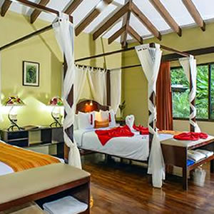 This 4-star boutique hotel is pleasantly situated on a hill between the Pacific Ocean and rainforest-covered peaks allowing breathtaking ocean views (and sunsets!) while a cooling breeze sweeps in from the mountains. Enjoy the swimming pool, gourmet restaurant, park grounds, spa, and well-appointed and comfortable ensuite rooms.