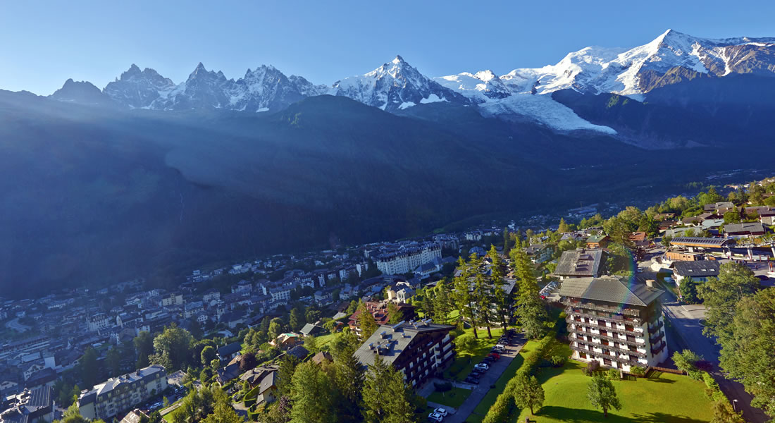 This charming Savoyard hotel is located just blocks from the pedestrian center of town, and offers incredible views of the Mont Blanc massif. Each room is of wood-carved, alpine chalet style décor. Start the day with a hearty breakfast featuring local specialty cheeses and meats and freshly baked pastries, and end the day with a dip in the swimming pool with Mont Blanc towering above.