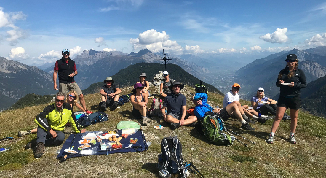 Heading down from Col de Torrent into rolling high pastureland, we are enchanted by the feeling of being truly immersed in the Alps. The panorama of rising peaks and glaciers over the spectacular lakes provides yet another picturesque setting for an alpine picnic, and we happily linger over our baguettes, cheeses of the region, local meats, and fruit. Of course, no proper Haute Route picnic would be complete without a bit of Swiss chocolate!