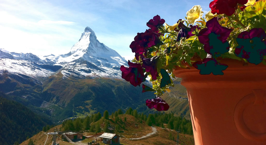 Today we relish having the most challenging hikes of our trip behind us. The hiking options from Zermatt are many, and our guide will have one in mind that will suit the group and the weather conditions. Perhaps we will use the extensive lift system to access higher ground and do a hike in the vicinity of Fluealp. From here we enjoy spectacular views above the mountains forming the northern border of Italy, including Monta Rosa, and across the Zermatt valley to the unforgettable Matterhorn.