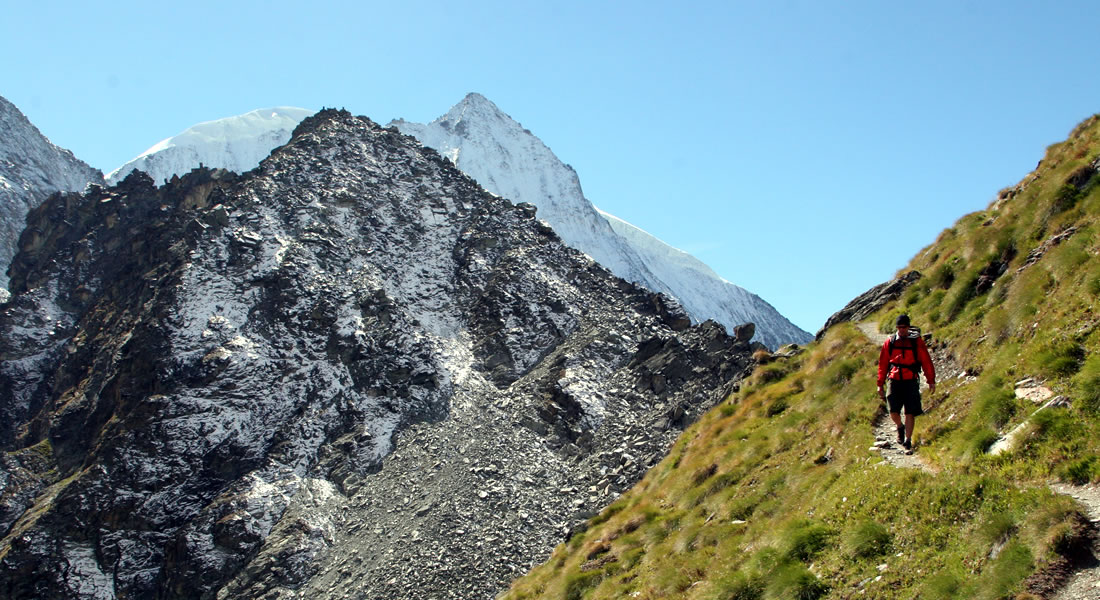 Our penultimate day of hiking is considered to be some of the most breathtaking scenery encountered along the Haute Route, and the tremendous beauty undoubtedly will mesmerize us more than once. We begin with a gradual, roughly three-hour climb over a scree slope, to the Augstbord Pass (9,494'), which was used during the Middle Ages as a trading route linking the Rhône Valley and Italy.