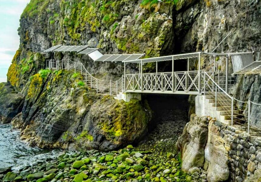 Experience one of the most exhilarating coastal walks in Europe, navigating a dramatic path of bridges, tunnels, and stairways carved directly into the sheer basalt cliffs. Suspended just above the crashing Atlantic, you’ll encounter hidden sea caves and diverse marine life before heading into the lush, emerald landscapes of the Antrim coast. The afternoon leads you through the “Queen of the Glens,” where peaceful woodland trails and cascading waterfalls offer a serene contrast to the rugged coastline, ending the day in a historic village famous for its long-standing distilling traditions.