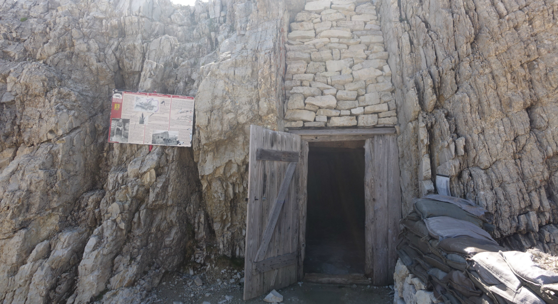 The tragically famous rock fortress, il Castelletto, stands below us, the setting of incredible battles and harbor of caves and tunnels where the soldiers of WWI dwelled for months on end. If time allows, we also explore the restored galleries, trenches, and emplacements near the rifugio. So much fighting occurred here that it literally changed the face of the mountain by the end of the war.