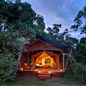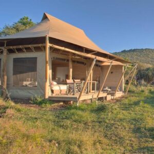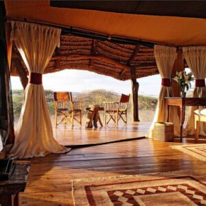 Tortilis Camp is set away from other Amboseli lodges, on the pristine southwest border, with the best mountain views and full access to both Amboseli and an exclusive private conservancy, where game walks, bush breakfasts and off-road driving are allowed. 16 spacious tents, each consisting of a main bedroom, elegant ensuite bathroom, private veranda, and glorious view of the mountain are complemented by a family tent and private villa. A lounge, bar and dining area, exquisitely built with natural materials and thatched roofs, provide a place to catch up after safari activities.