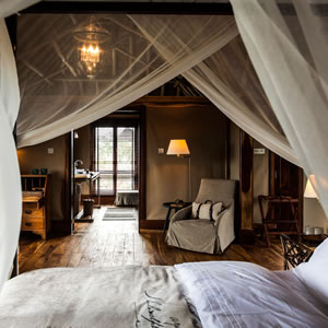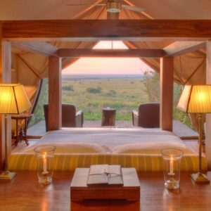 An authentic 1920s-style safari camp in a private game concession, Cottar’s accommodates up to 28 guests in 10 ensuite canvas tentsincluding four family tents, each with two bedrooms sharing a veranda, living room with fireplace, and dining room; and one honeymoon tent. A tented lounge area offers fine dining, and there is a pool and spa area. A five-bedroom private housecomplete with stafffeatures a magnificent viewing deck and exclusive swimming pool.