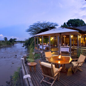 Set in a private conservancy just beyond the western Masai Mara, Olonana is an award-winning camp featuring 14 luxury tents with ensuite bathrooms and private verandas overlooking the river, offering the perfect spot for guests to relax and watch the resident hippos in the water. A traditional library, secluded pool and mini-spa are among the many amenities. The camp offers game drives, cultural visits, bush dinners, sundowners, scenic flights and balloon rides.