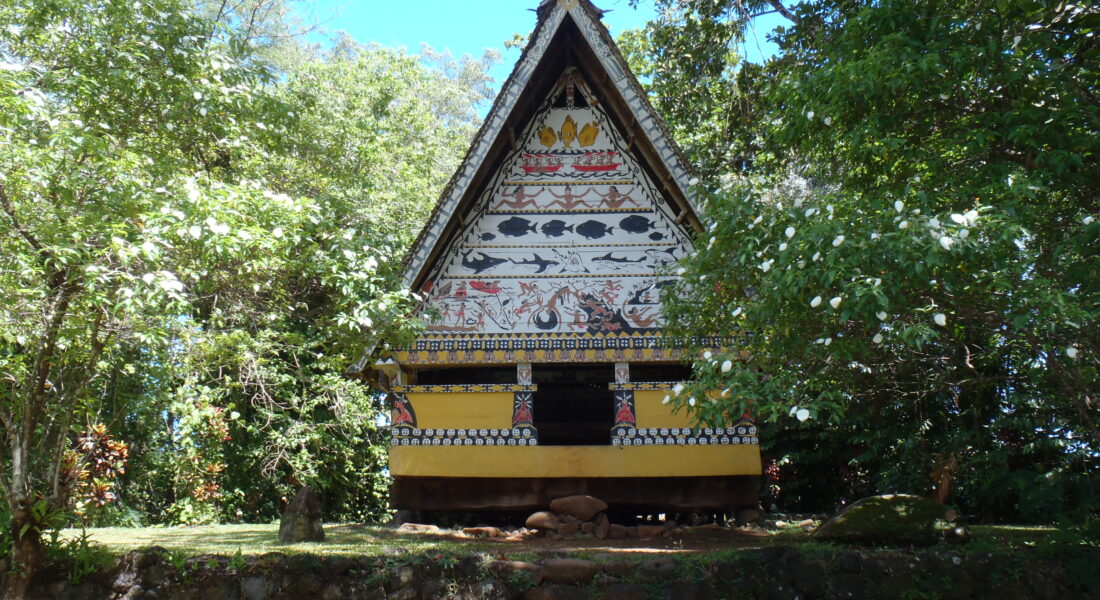 On the museum grounds sits a replica bai, or men's meeting house. Each village in Palau had a men's meeting house which were elaborately painted and decorated with carvings of traditional stories and legends.