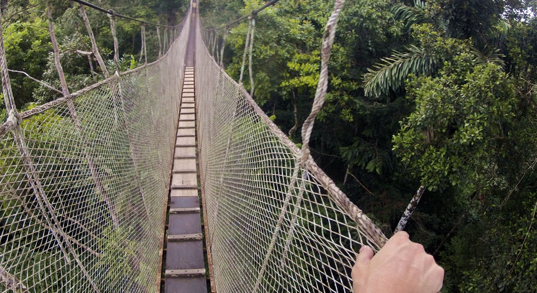 Day 1: Into the Amazon River Basin via a boat ride along the Madre de Dios River, guided trail walk, and twilight river excursionDay 2: Trail walk to Sandoval Lake then board a platform-style boat and ply Oxbow Lake's peaceful waters on the lookout for the rare giant otters, caimans, and other wildlife; canopy walk across towers and suspension bridges to discover the rich forest from another angleDay 3: Riverboat ride to Gamitana Creek; visit to rainforest farm; afternoon at your leisureDay 4: Return by boat to Puerto Maldonado; visit a local butterfly farm; departure in the afternoon