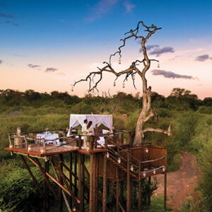 A private experience, a "treehouse" sleep out is an unforgettable experience. Reserved as an optional add-on for those staying in the Lion Sands Game Reserve, Chalkley’s Treehouse is set amid untouched wilderness, surrounded by African bush and uninhibited wildlife. Chalkley’s is a simple but elegent platform equipped with a comfortable bed draped with netting and a table for two. Guests arrive to the treehouse at sunset, where drinks and a scrumptious picnic dinner await.