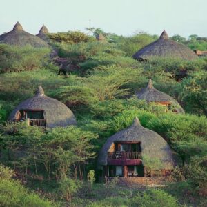Perched on the edge of a towering escarpment overlooking the sparkling waters of Lake Manyara, Lake Manyara Serena Lodge is designed around this panoramic scene. The lodge features a simple timbered reception area, built in traditional African style, a dining room, bar and veranda, below which lies the pool. Each circular rondavel-style room offers spectacular views over the lake.