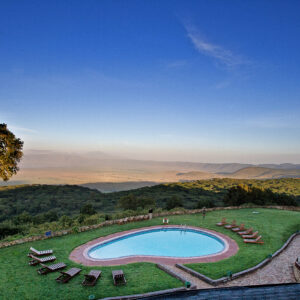 The only lodge on the eastern rim of the Ngorongoro Crater, Sopa Lodge allows easy access to the crater floor, beautiful sunsets, and a private solarium for each room. Themed around traditionally circular African houses with conical roofs, decorated with examples of Africa’s traditional woodcarvings and sculpture, and embracing the colorful textiles and bold patterns of classic African design, the lodge complements its dramatic surroundings. Views toward the west ensure beautiful sunsets over the large swimming pool.